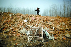3月29日,陶興堯屋子只剩下被拆后的廢墟,屋子南側丟著四個半米高的紅色滅火器。
