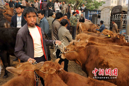 秦大章夫婦看上了馮元達一頭不到兩歲的小牛,“沒換牙齒、蹄也不錯!鼻卮笳潞軆刃械母嬖V記者。在此后近30分鐘的時間里,一場在2300元至1900元人民幣之間的價錢拉鋸戰進行起來。最終,在周邊人的撮合下,秦大章以2010元的價錢買到了他看上的小牛。