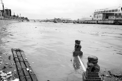 昨日,湘江風光帶風帆廣場附近的一、二級親水游道全部被上漲的江水淹沒。至昨日下午2時,湘江長沙段水位達34.83米。余志雄攝(圖片來源:長沙晚報)