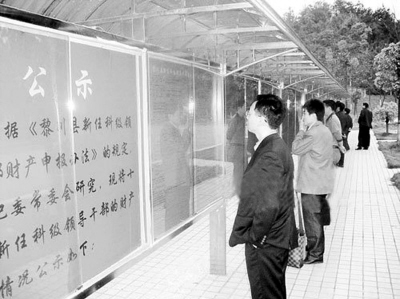 “哇,房子、車子、票子都公開出來了!”4月27日,公示的第一天,71歲的退休干部黃友賓在江西省黎川縣贛閩廣場看到“新任科級領導干部財產收入情況公示表”后,驚詫地說。黎川縣紀委書記姚英華表示,這是該縣在江西首創的新任科級領導干部財產申報制度。而在全國,要求對爭論20多年的官員財產申報予以立法的呼聲從未間斷。