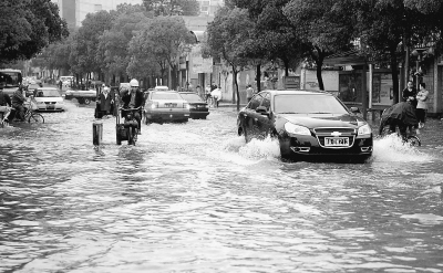 暴雨過后,無論是廣州的老城區還是新興CBD都出現了嚴重的水浸街現象。楊箕、龍口西、林和西等交通要道幾乎變成“水塘”,道路堵塞、行車困難直接導致工薪族們上班遲到。家住廣州越秀區五羊新村附近的王先生說,經過暴雨“洗禮”,廣州幾乎變成了“水城”,在路上開車就像開船一樣寸步難行。