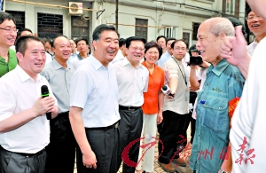 汪洋邊走邊看,認真聽取介紹,要求廣州市總結獵德村改造的好經驗好做法,加快推進城中村和舊城區改造。