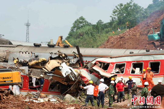 中新網東鄉5月23日電(艾永全 何柳斌 劉占昆)23日下午14時,距離滬昆鐵路客運列車脫線事發已經12小時,武警、消防、醫護、交警、特警仍在事故現場緊急救援。