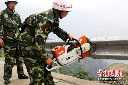 據汶川縣公路局局長王永新介紹,排險工作結束后,汶川縣公路部門將爭取用6個小時左右時間搶通出一條臨時過往便道。目前,汶川縣公路部門已出動30名路政、道班人員和4輛裝載車原地待命,只等山體排險工作結束,立刻開展垮塌路段的土石清理,全力搶通道路。