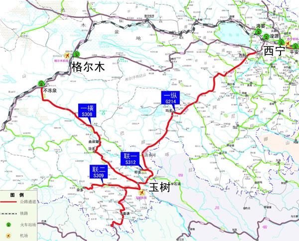 | 干線公路 構建“一縱一橫兩聯”生命線公路通道:“一縱”為國道214線共和至多普瑪(青藏界)段、“一橫”為省道308線玉樹至不凍泉段、“聯一”為省道312線珍秦至稱多段、“聯二”為省道309線多拉麻科至雜多段。整治改造1717公里,其中一級公路10公里,二級公路1277公里,三級公路430公里。 |