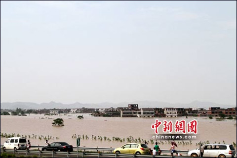 長江水文局局長王俊說,受強降雨影響,“洞庭四水”(湘江、資水、沅江、澧水)的湘江干流、資水桃江站、“鄱陽五河”(贛江、撫河、信江、饒河、修水)的贛江、撫河、信江干流水位全線超警,多條支流的水文站點水位或流量達到歷史最高水平。