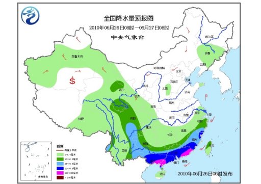 中央氣象臺今晨繼續(xù)發(fā)布暴雨藍(lán)色預(yù)警:預(yù)計(jì),6月26日08時(shí)到6月27日08時(shí),浙江南部、江西南部、福建大部、廣東大部、廣西中南部有大雨或暴雨,局地有大暴雨,上述部分地區(qū)并伴有短時(shí)雷雨大風(fēng)等強(qiáng)對流天氣。請當(dāng)?shù)乩^續(xù)注意城市和農(nóng)田的排澇;山區(qū)的朋友應(yīng)加強(qiáng)地質(zhì)災(zāi)害的防御。