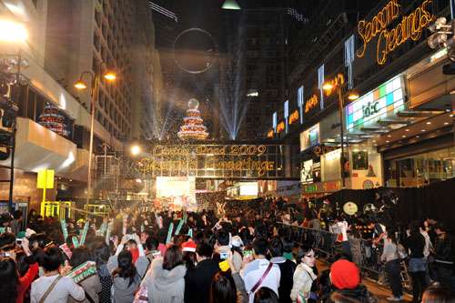 尖沙咀文化中心一帶,不少情侶、年輕人和一家大小戴上圣誕帽和頭飾,拿著閃燈道具,魚貫前往海旁拍攝對岸燈飾,踏入零時的一刻,群眾圍住鐘樓自發(fā)倒數(shù)。在人來人往的街道上,間中有詩歌班獻唱圣詩報佳音,市民暫時停下腳步,放松心情,四處洋溢著歡騰氣氛。至于平日集結外國人士的中環(huán)蘭桂坊,今夜不再是白領的天地,家長帶同子女到該處湊熱鬧,感受一下西方節(jié)日的氣氛。