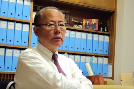 4月29日下午,記者走進(jìn)日本參議院議員、民主黨國會(huì)對策委員會(huì)常務(wù)副委員長、民主黨外委會(huì)主任川上義博的辦公室,首先看見書架上擺放著中共總書記胡錦濤與他在人民大會(huì)堂握手的照片。