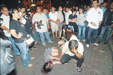 一對男女警員唯有以半抱半拖姿勢,把她連同其它落網者,扣上手銬押進警車。這場風波引起公眾圍觀,當中有人對于警方嚴厲執法,譴責警員無情。