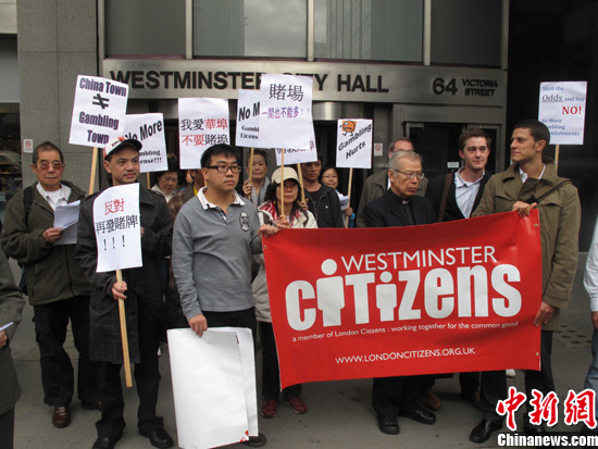 中新社倫敦9月16日電(記者 魏群)來(lái)自“倫敦公民”組織及多個(gè)華社的30余人,16日前往倫敦威斯敏斯特市政府,呼吁停止在倫敦華埠附近發(fā)放新的賭博場(chǎng)所經(jīng)營(yíng)牌照,以保持均衡的社區(qū)發(fā)展及健康的唐人街風(fēng)貌,免使倫敦華埠淪為倫敦“賭埠”。