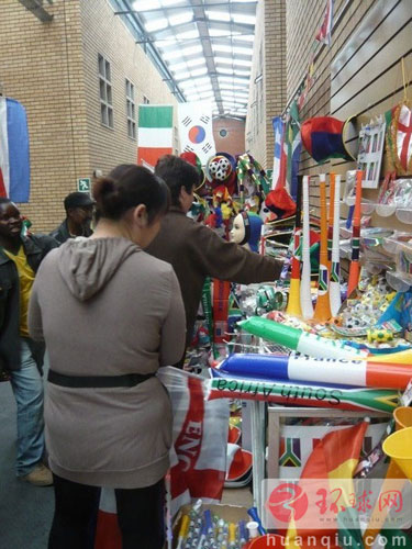 穿行在這里的商鋪之間,安全感和親切感倍增,到處是黃皮膚黑頭發(fā),還有不時(shí)會(huì)飄送過來的鄉(xiāng)音。商城中的狂歡氣氛相當(dāng)濃重,所有的走道里扎滿了世界杯32強(qiáng)的國旗。商鋪中最受歡迎的也是售賣世界杯相關(guān)商品的,每走幾步,就可以看到許多非華人的買家聚集在售賣球衣、球服、大喇叭的攤位前問價(jià),而站在旁拍照的記者,竟因?yàn)殚L(zhǎng)著華人的面孔,被屢屢誤認(rèn)為是老板,遭問了不下十幾次“這個(gè)值多少錢?”實(shí)際上,世界杯官方的球衣和紀(jì)念品幾乎全都是中國制造的,當(dāng)然,百家商城里出售的商品多數(shù)是沒有授權(quán)的“山寨版”,比正版貨的價(jià)格便宜數(shù)倍,因此南非各地的人,也有不少專程跑到中國城來批發(fā)便宜貨?磥恚澜绫帜茏屇戏侨A人大賺一筆了。(底婕)