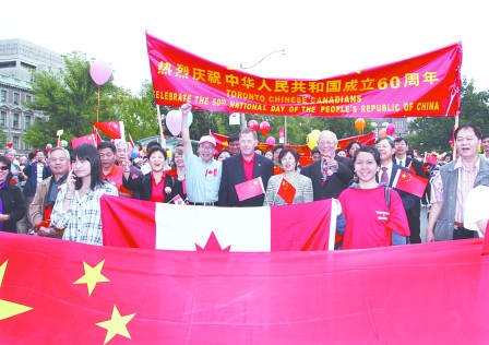 中新網9月29日電 據加拿大《明報》報道,為慶祝中國國慶60周年,多倫多華人小區各界27日聯合舉辦大型的中國國慶大巡游,參加的華人社團超過40個,連多倫多警隊今年也派出隊伍參加巡游。