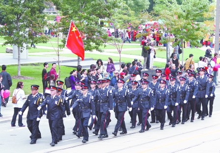今年較矚目的是,多倫多警隊亦由參事警司科里(Tony Currie)及源植勉督察帶領一隊華裔警察參加巡游,他們步操整齊,雄赳赳的引人注目。