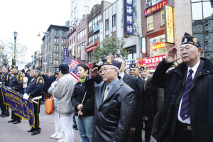 中新網11月13日電 據美國《僑報》報道,11日是退伍軍人節,紐約華裔美國退伍軍人會今年首次參加紐約退伍軍人大游行。今年是第90屆游行,參加過二戰、越南戰爭、海灣戰爭的華裔退伍軍人們身穿制服,充滿自豪感地參與這次游行,一路上接受民眾的致敬和歡呼。