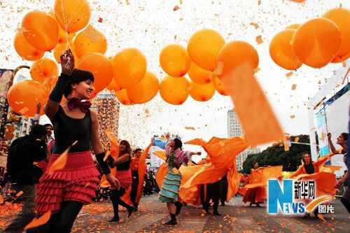 阿根廷的80多個移民團體參加了當天的游行。來自世界各地的4000余名移民和他們的后代身著傳統服飾,或攜帶祖籍國特產,或表演傳統文藝,載歌載舞地穿過位于市中心的七月九日大街。