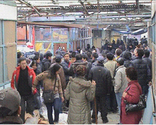 市場一家被拉走300多箱貨物的浙江瑞安籍華商反映,他這個店鋪前幾天曾被封過,今天警察又來查封,并說如果付10000列伊(相當于2萬元人民幣)就搬走10箱貨物,如果不付,就沒收全部貨物。店主無錢支付,在試圖攔截警察搬貨時,被警察推倒在地,警方強制拉走店里的全部貨物,還開了罰款單讓店主到總局交罰款,但對因何拉走貨物卻沒給任何理由。店主哭訴,我們有正規的買店合同和貨物合法手續,警察憑什么這樣做。據瑞安籍華商透露,被拉走的貨物是靴子,價值在1萬歐元以上。