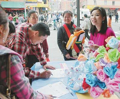 華策會小區拓展計劃在街頭調查閩籍新移民單身狀況。 (美國《世界日報》∕曹健攝影)