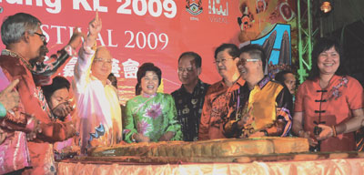 納吉攜同夫人拿汀斯里羅斯瑪,在旅游部長黃燕燕、吉隆坡市政局總監(jiān)拿督哈芝沙列尤索夫、籌委會主席拿督姚長祿、吉隆坡小販公會副主席拿督洪細(xì)弟等華團代表的陪同下,出席“一個馬來西亞,全民慶中秋”2009年吉隆坡中秋嘉年華會。