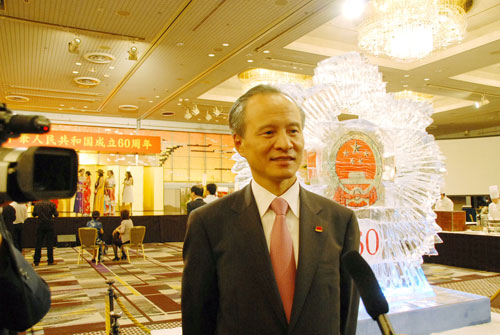 中新網9月30日電 據日本新華僑報網報道,29日,中國駐日本大使崔天凱在東京舉行盛大招待會,熱烈慶祝中華人民共和國成立60周年。日本內閣官房長官平野博文、財務大臣藤井裕久等11名內閣大臣,眾議院議長橫路孝弘、參議院議長江田五月、前首相羽田孜、森喜朗、福田康夫,日本經濟、科技、教育、文化、新聞等各界及對華民間友好團體負責人,在日華僑華人、留學生、中資機構代表共約2000余人應邀出席了招待會。