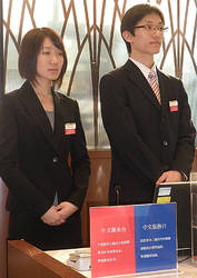中新網2月2日電 據日本新華僑報網報道,2月1日,在日本札幌的中國人王月仙和鄭中華成為三越百貨札幌店的大堂導購員。這是三越百貨在2月5日至11日的“札幌冰雪節”期間和中國舊歷新年之際,為了迎接說漢語的客人而特別增添的服務項目。