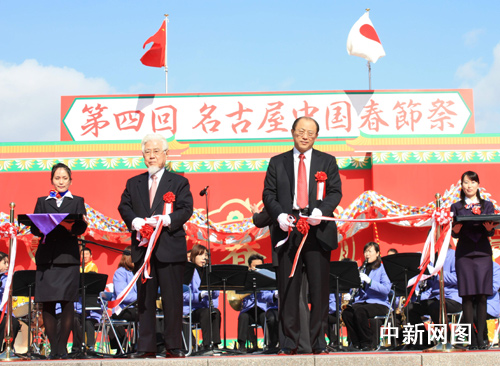 上午11時,第四屆名古屋春節祭執行委員會委員長王立保宣布開幕式開始,會場立即響起了富有濃郁中國特色的春節喜慶音樂,舞龍舞獅歡騰入場,引得觀眾席上的日本小朋友們開心得大叫起來。隨后中國駐名古屋總領事張立國與愛知縣日本友好協會會長后藤淳、東海日中貿易中心會長古川晶章等嘉賓來到舞臺上,一同為春節祭開幕式剪彩。