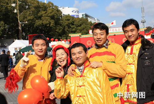 春節祭正面舞臺為名古屋市民獻上的是在日中部地區華僑華人團體、留學生、研修生以及日本當地的社團、學校選送的文藝節目。在主會場還有14家小吃店鋪以及41家物產、企業的宣傳攤位。值得一提的是,這中間不僅僅是華僑華人的店鋪,日本的大企業、日式旅店、電信公司、觀光宣傳部門都有參加。市民從四面八方源源不斷地被吸引過來,會場里面的人越聚越多。一邊品嘗美食一邊欣賞演出,有的市民還拉住表演完節目的身著鮮艷中國少數民族服裝、舞龍舞獅的中國留學生,熱情地與他們攀談、合影留念,讓記者無不感慨名古屋普通市民對中國文化的濃厚興趣和對中國人的友好情誼。