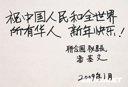 在中國傳統春節佳節到來之際,多國政要紛紛發表賀詞賀信,向華人和中國人民拜年,祝賀新春。在這其中最為引人注目的是,1月23日,聯合國秘書長潘基文特意用漢字寫下了對中國人民和全球華人的新春祝福:“祝中國人民和全世界所有華人新年快樂!”