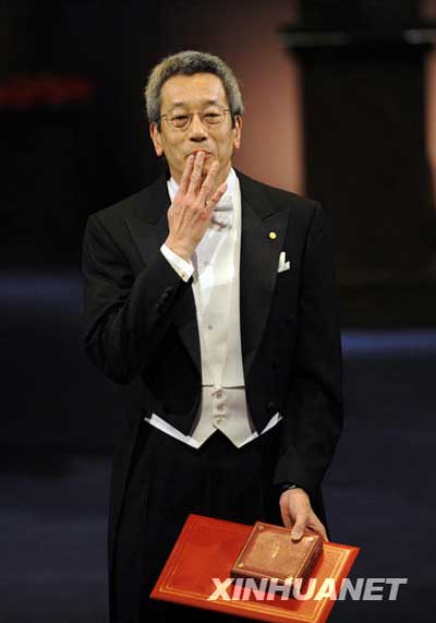 美籍華裔科學家錢永健領獎后飛吻慶祝。(新華社)