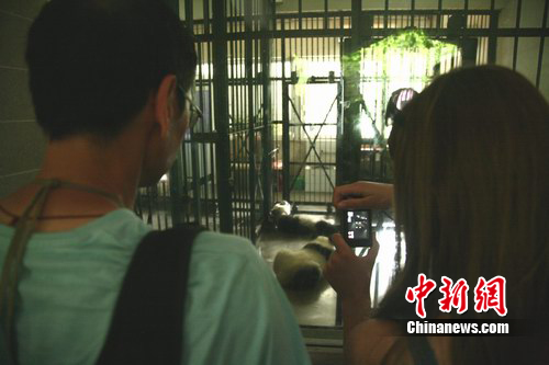 來自美國的安妮撅著嘴唇告訴記者,“沒有看到成年大熊貓,好難過。我記得我在美國看過到它們,實(shí)在太可愛了。”