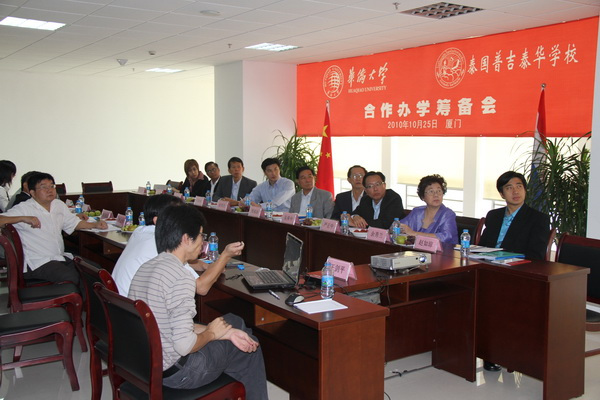 中新網10月27日電 據華僑大學新聞網消息,10月25日,華僑大學與泰國普吉泰華學校合作辦學籌備會在華僑大學廈門校區舉行。會議由華僑大學華文教育辦公室主任趙明光主持,建筑學院副院長申曉輝及華教辦全體工作人員與泰國普吉泰華中學考察團一行細致討論了雙方合作建設國際學校的建筑設計方案與教學相關工作。