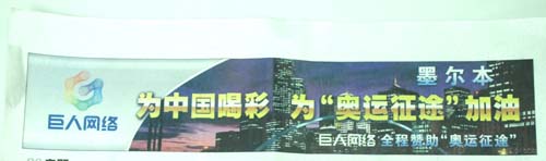 有讀者昨天向記者曝料,巨人網(wǎng)絡(luò)在某報上打出的“為‘奧運(yùn)征途’加油”廣告涉嫌違反奧林匹克知識產(chǎn)權(quán)保護(hù)的相關(guān)規(guī)定。