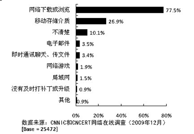 去年,我國有超九成網民碰到過網絡釣魚網站,遭遇網絡安全事件的網民中77.5%是在網絡下載或瀏覽時遭遇病毒或木馬攻擊(詳見附表)。77.3%的網民反映付出大量時間,平均每人需花約10個小時處理事故。