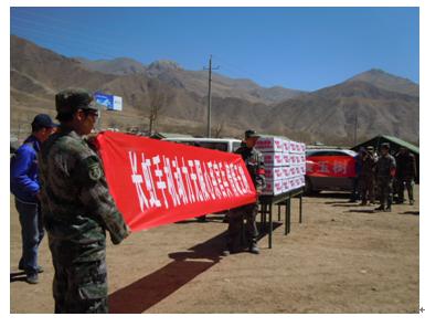長(zhǎng)虹手機(jī)首批災(zāi)后重建物資抵達(dá)玉樹----捐贈(zèng)給成都軍區(qū)防化部隊(duì)手中