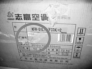 空調外包裝被撕過的痕跡很明顯