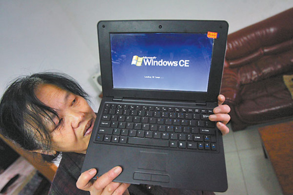 老兩口也不是很懂這個,直到晚上大兒子回家仔細檢查后才發現,這所謂的超級上網本,只是一堆塑料簡易制品,跟小孩子的玩具沒兩樣。而且這臺電腦根本打不開,按了電源鈕后,屏幕上只出現“Windows CE”字樣,就無任何反應了。