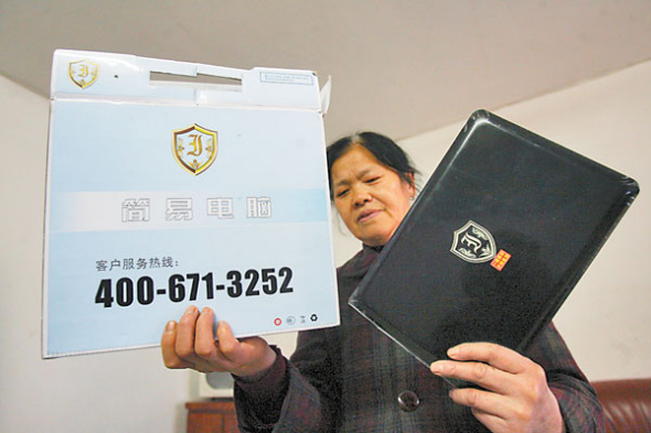 湯大媽2月21日收到了包裹,這是她小兒子劉夏定購的上網本。大年初四這天,兒子在一個電視頻道上看到了購物廣告,一名主持人稱這臺電腦內置無線網卡,上網不用錢,且只需1680元,加39元的郵寄費就可送貨上門,另外還贈送蘋果手機和數碼相機各一臺。