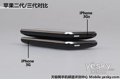比較iPhone 3G和iPhone 3Gs,在外觀方面幾乎沒有差異,僅在容量標識上有所區別,一樣的機身尺寸和重量,若要是16GB版3Gs與iPhone 3G放在一起,恐怕真的很難從外觀上區分二者。
