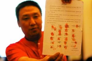 昨日,諾基亞經銷商代表在京召開新聞發布會抗議諾基亞高額罰金,一經銷商代表會上展示聯名狀。本報記者 周曉東 攝
