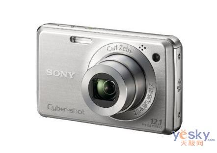 外觀上索尼W220只在前面板采用了經過拉絲處理的金屬材質,這可以在一定程度上降低相機的制造成本。雖然定位稍低,但是索尼W220鏡頭環上醒目的“Carl Zeiss”標志依然表明這是一部采用了卡爾·蔡司認證鏡頭的相機。