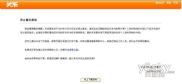 中國雅虎社區運營部發布停止服務通知,宣布因運營策略調整,中國雅虎旗下SNS社區雅虎關系10月30日正式停止服務。這距離中國雅虎推出該服務僅一年時間。