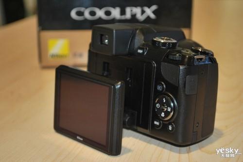 在外觀方面并沒有太大改進,在機身背面采用了一塊3英寸的可以旋轉LCD屏幕,可以方便從不同角度取景。從機身前面看,P90的手柄多少能找出尼康單反手柄的影子,手柄比較寬厚,握持起來手感不錯。由于采用了24倍光學變焦,P90的鏡頭伸出長度要很長,配合黑色的機身,整體看起來相當專業。