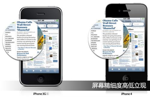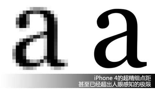 人眼所能分辨率最高PPi為300,這也就意味著iPhone4屏幕的細(xì)膩程度已經(jīng)超過了人眼的分辨范圍,這也是官方將其稱作“Retina Display”的原因。在Apple官網(wǎng),其給出了Retina Display的形象表示,3代與4代產(chǎn)品對比,顯示同一網(wǎng)頁,用放大鏡觀察細(xì)節(jié),4代的明顯更清晰,畫面呈現(xiàn)出高度細(xì)膩,而3代機(jī)型則會(huì)出現(xiàn)鋸齒甚至馬賽克。