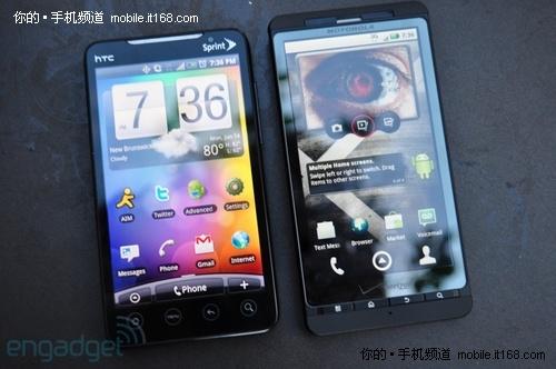 圖為摩托羅拉Droid X對(duì)比HTC EVO 4G