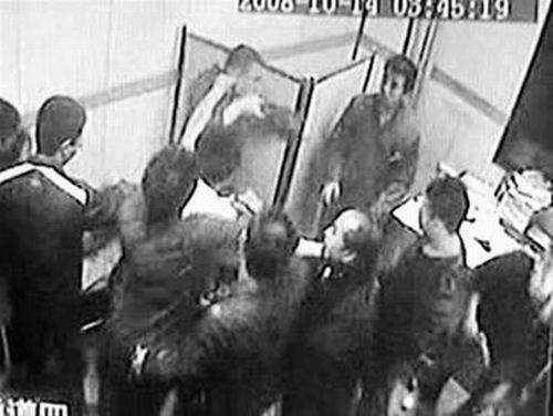 穿白衣男子沖了進來向醫生揮起拳頭