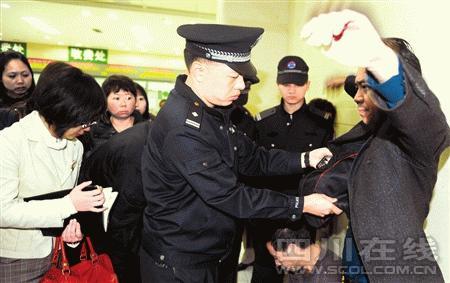 昨天(10月21日)清晨6點(diǎn),華西醫(yī)院門診一樓掛號(hào)窗口前,四名小伙子密切注視著人群中來(lái)回走動(dòng)的“號(hào)串串”,經(jīng)過(guò)一個(gè)小時(shí)的暗訪取證之后,清晨7點(diǎn),四名小伙子全部現(xiàn)身,聯(lián)合武侯公安分局玉林派出所的13名警察,揪出了混在人群中的7名“號(hào)串串”,原來(lái)他們是便衣警察,已經(jīng)在華西醫(yī)院門診部潛伏多日。據(jù)了解,這是華西醫(yī)院、武侯公安聯(lián)合進(jìn)行的整治“號(hào)串串”行動(dòng)。