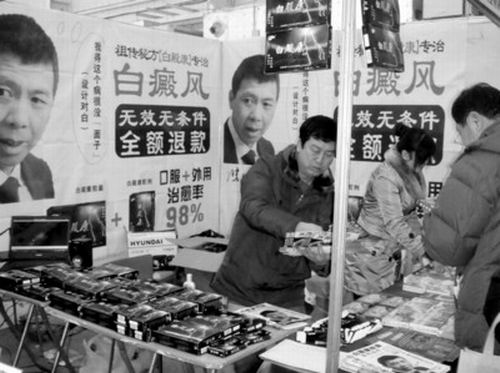 這位工作人員說,一旦馮小剛把他們告了,他們沒錢賠給馮小剛,就有機會讓馮小剛使用他們的藥,治療白癜風。這家藥品企業的做法也的確產生了效果,不少人圍著展臺,“馮小剛給代言的。俊薄榜T小剛有白癜風?”