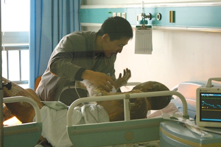附近一金屬加工廠保安告訴記者,上午11時許,一名工人從福祥工廠的辦公室里走出來,隨后去樓上廠房拿了一桶天那水下樓,便把液體往身上倒。 “他一句話沒說,拿著打火機點燃了自己!碑敃r有幾個保安看到曾撲上去要搶過他手里的打火機卻未能制止。該工人當即全身都是火,保安人員遂用滅火器撲滅。自焚工人立即被送往龍崗區中心醫院。記者從燒傷科了解到,該工人身上45%重度燒傷,暫時沒有生命危險。