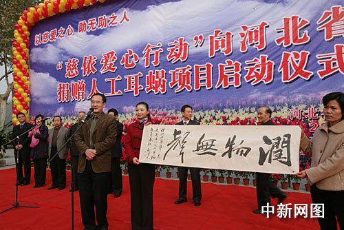 中新網11月10日電 11月10日,由海外愛心人士和畫家張和勇發起的 “慈依愛心行動”, 向河北省貧困聾兒捐贈人工耳蝸儀式在石家莊舉行,此次受助的10名重度耳聾的聾兒分別來自全省8個地市的貧困家庭,每名聾兒獲贈一套價值16.8萬元人民幣的澳大利亞人工耳蝸,本月將在北京陸續接受植入手術。據悉,此次捐贈是境內目前規模最大的一次向貧困聾兒捐贈人工耳蝸的慈善活動。