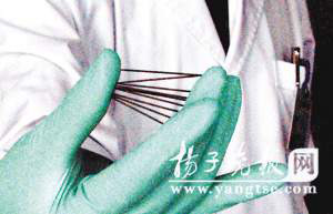醫生用磁鐵將病人體內縫衣針全部取出。 吳勝 攝